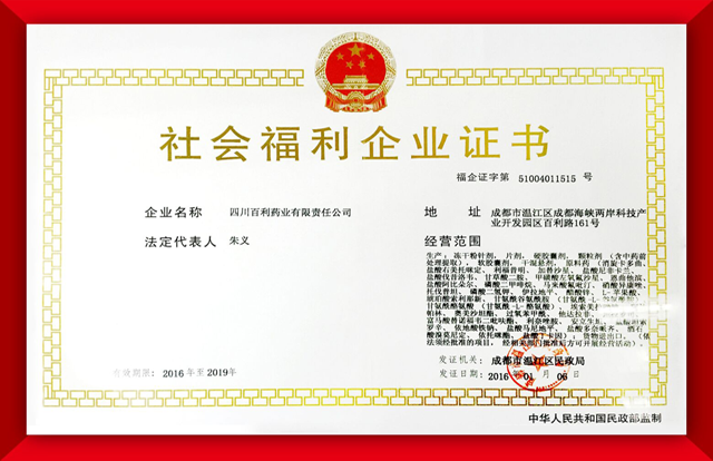 2016年公司获得“福利企业”证书